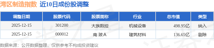 近10日内湾区制造(980009)指数成份股做了调整,新纳入了1只股票,剔除了1只股票。