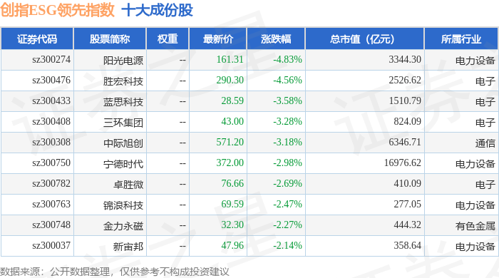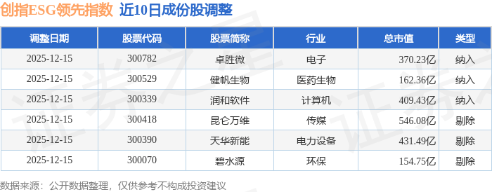 近10日内创指ESG领先(970031)指数成份股做了调整,新纳入了3只股票,剔除了3只股票。