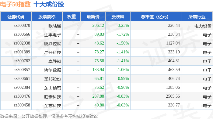 电子50(399281)指数十大成份股详情如下: