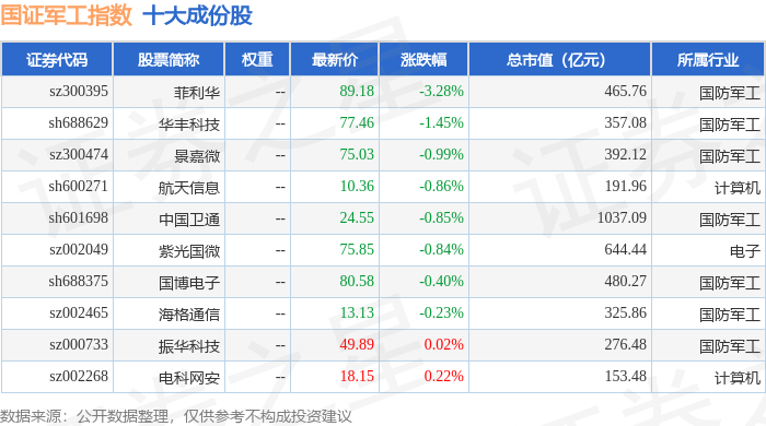 近10日内国证军工(399368)指数成份股做了调整,新纳入了1只股票,剔除了1只股票。