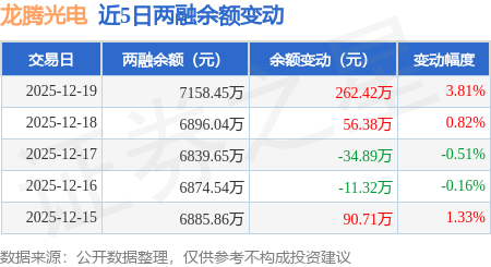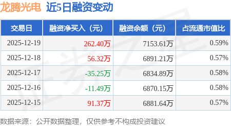 证券之星消息,12月19日,龙腾光电(688055)融资买入357.6万元,融资偿还95.2万元,融资净买入262.4万元,融资余额7153.61万元,近20个交易日中有13个交易日出现融资净买入。