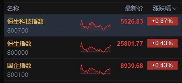 12月22日消息,港股三大指数集体上涨。截至收盘,恒生指数涨0.43%,报25801.77点,恒生科技指数涨0.87%,国企指数涨0.43%。盘面上,科网股涨多跌少,百度涨超1%小米跌超1%;黄金股全天强势,中国黄金国际涨超7%;半导体板块涨幅居前,华虹半导体涨超5%;新消费概念股部分上涨,蜜雪集团涨超9%;今日四只新股上市,印象大红袍、华芢生物、明基医院、南华期货挂牌,集体破发。