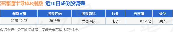 近10日内深港通半导体R(483067)指数成份股做了调整,新纳入了1只股票。