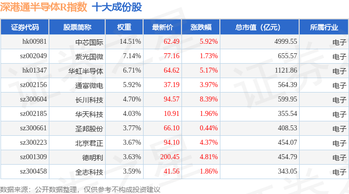 证券之星消息,12月22日,深港通半导体R(483067)指数报收于14906.69点,涨3.69%,成交425.16亿元,换手率3.04%。当日该指数成份股中,上涨的有37家,珂玛科技以20.0%的涨幅领涨,下跌的有3家,赛微电子以4.64%的跌幅领跌。