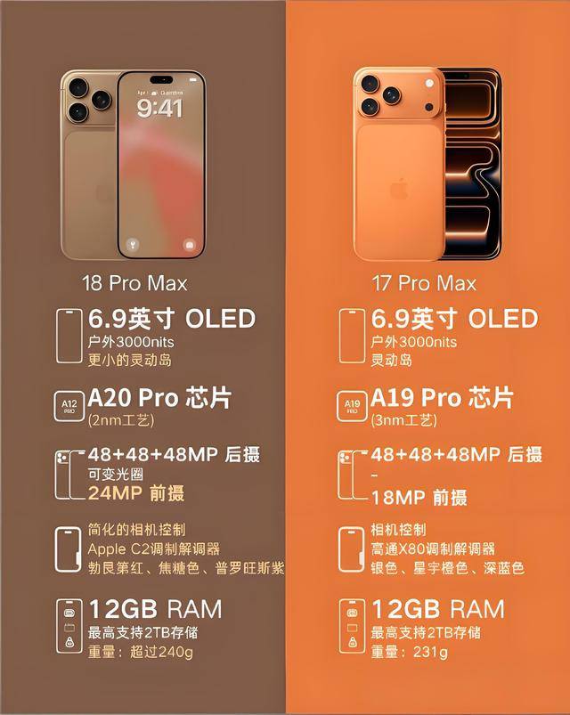 性能方面,iPhone 18 Pro Max将搭载基于台积电2nm工艺制程的A20 Pro芯片,这是苹果首款采用该先进制程的移动处理器。配合晶圆级多芯片模块(WMCM)封装技术,A20 Pro芯片在计算速度、能效比和AI算力上都将实现显著提升。