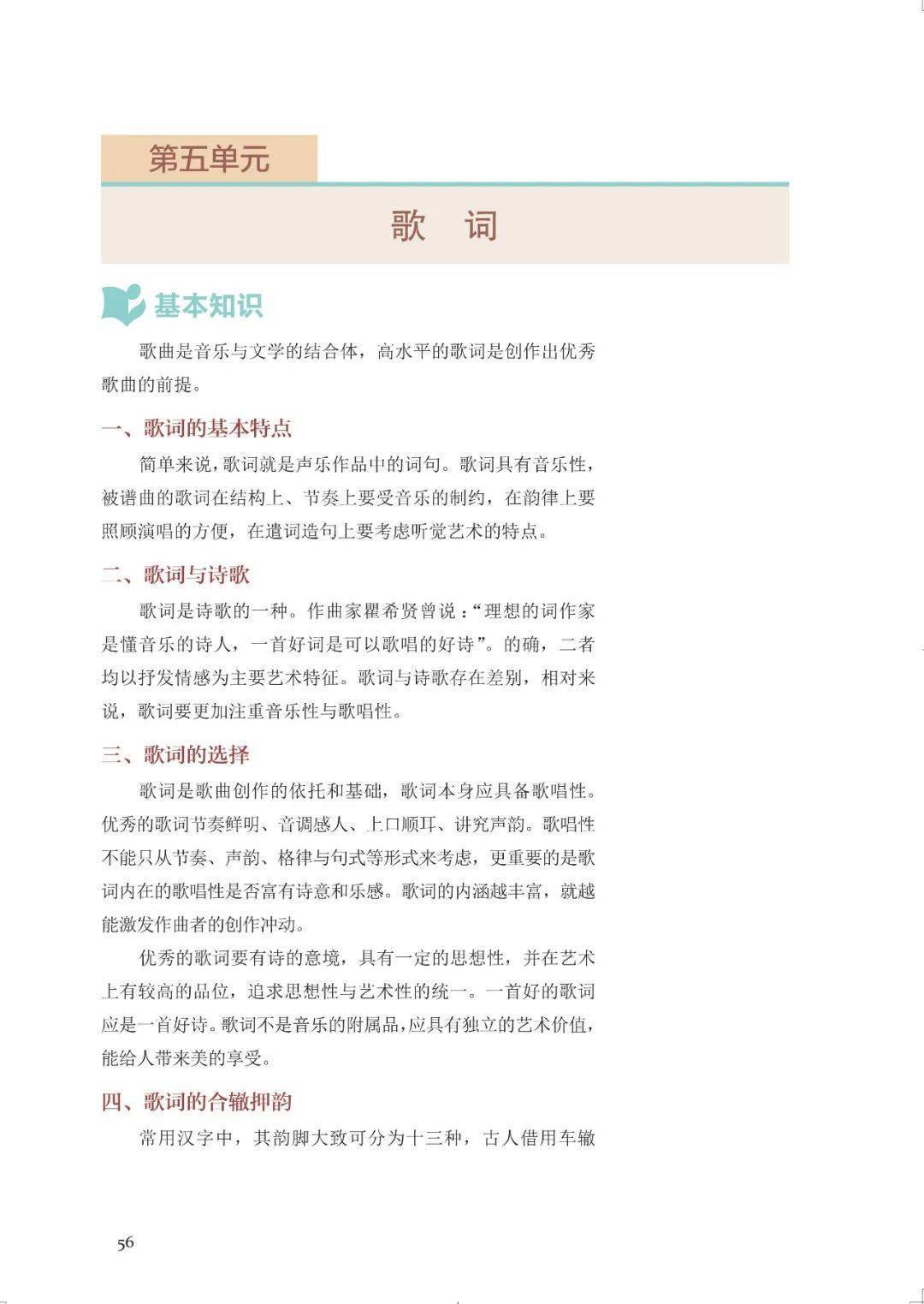 为了帮助高中生自主预习与有效复习,我们整理了2026人音版高中音乐必修4《音乐编创》电子课本,教材突出跨学科思维与实际应用能力的培养,下面以图片的形式呈现给大家,希望可以帮助到大家。