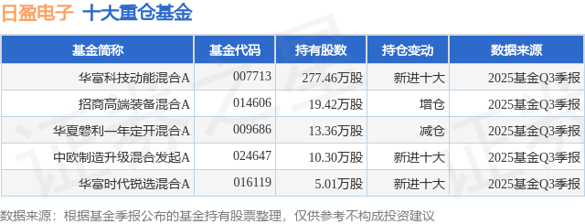 根据2025基金Q3季报公募基金重仓股数据,重仓该股的公募基金共5家,其中持有数量最多的公募基金为华富基金的华富科技动能混合A。华富科技动能混合A目前规模为10.01亿元,最新净值1.7579(12月26日),较上一交易日上涨0.4%,近一年上涨78.36%。该公募基金现任基金经理为沈成。沈成在任的基金产品包括:华富新能源股票型发起式A,管理时间为2021年12月29日至今,期间收益率为25.76%;华富产业升级灵活配置混合A,管理时间为2025年12月1日至今,期间收益率为8.75%。