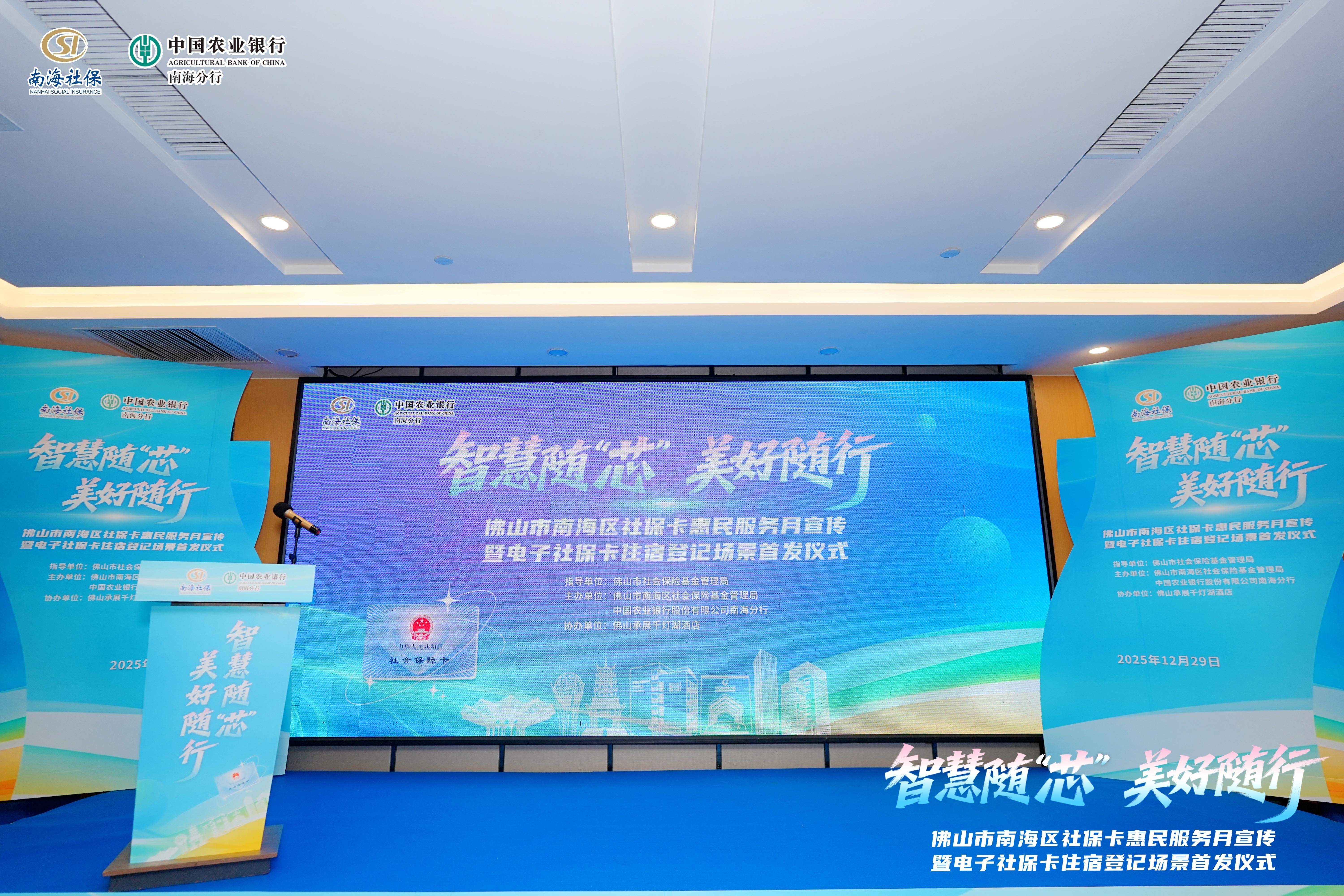 12月29日,佛山市南海区社保卡惠民服务月宣传暨电子社保卡住宿登记场景首发仪式在佛山承展千灯湖酒店举行。此次活动以“智慧随‘芯’ 美好随行”为主题,总结回顾了“十四五”期间南海区社保卡工作主要成效,正式宣布电子社保卡住宿登记场景在南海首发落地,标志南海区社保卡居民服务“一卡通”再添应用新场景,以数字化民生服务为区域人文经济高质量发展注入强劲动能。