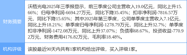 2025年12月17日,中邮证券研究员吴文吉,陈天瑜发布了对沃格光电的研报《沃显领航,光拓新域》,该研报对沃格光电给出“买入”评级。研报中预计公司2025/2026/2027年分别实现收入27/33/50亿元,归母净利润-1.1/1.4/5.0亿元,维持“买入”评级。证券之星数据中心根据近三年发布的研报数据计算,该研报作者对此股的盈利预测准确度为3.27%。