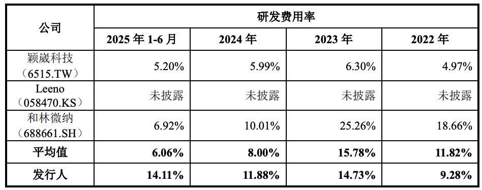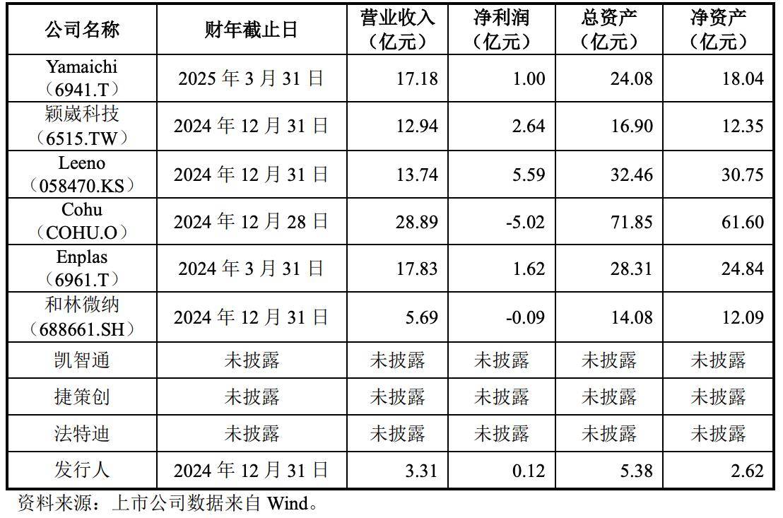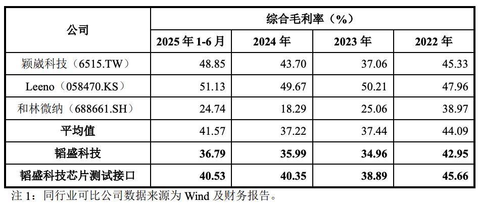 2022年、2023年、2024年和2025年上半年,韬盛科技的营收分别为1.65亿元、2.09亿元、3.31亿元、1.92亿元,2022年至2024年营业收入复合增长率达41.54%,净利润为0.17亿元、-0.08亿元、0.12亿元、0.08亿元。招股书显示,其利润水平波动是因为在MEMS探针卡领域保持高强度研发投入,影响整体利润释放节奏。