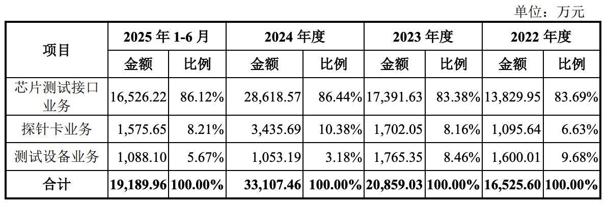 二、主要营收来自芯片测试接口业务,多项技术指标领先海外龙头