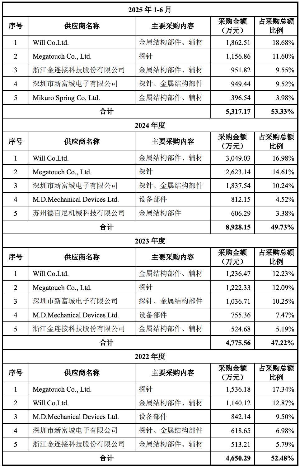目前,韬盛科技已经服务超700家单体客户,客户涵盖GPU和AI芯片、CPU、手机SoC芯片、存储、射频通信芯片、功率芯片、封测等。值得一提的是,报告期内,韬盛科技是地平线芯片测试接口第一大供应商。在先进存储领域,该公司为长江存储开发了首个能够实现512颗存储芯片并行测试的国产DSA芯片测试接口。