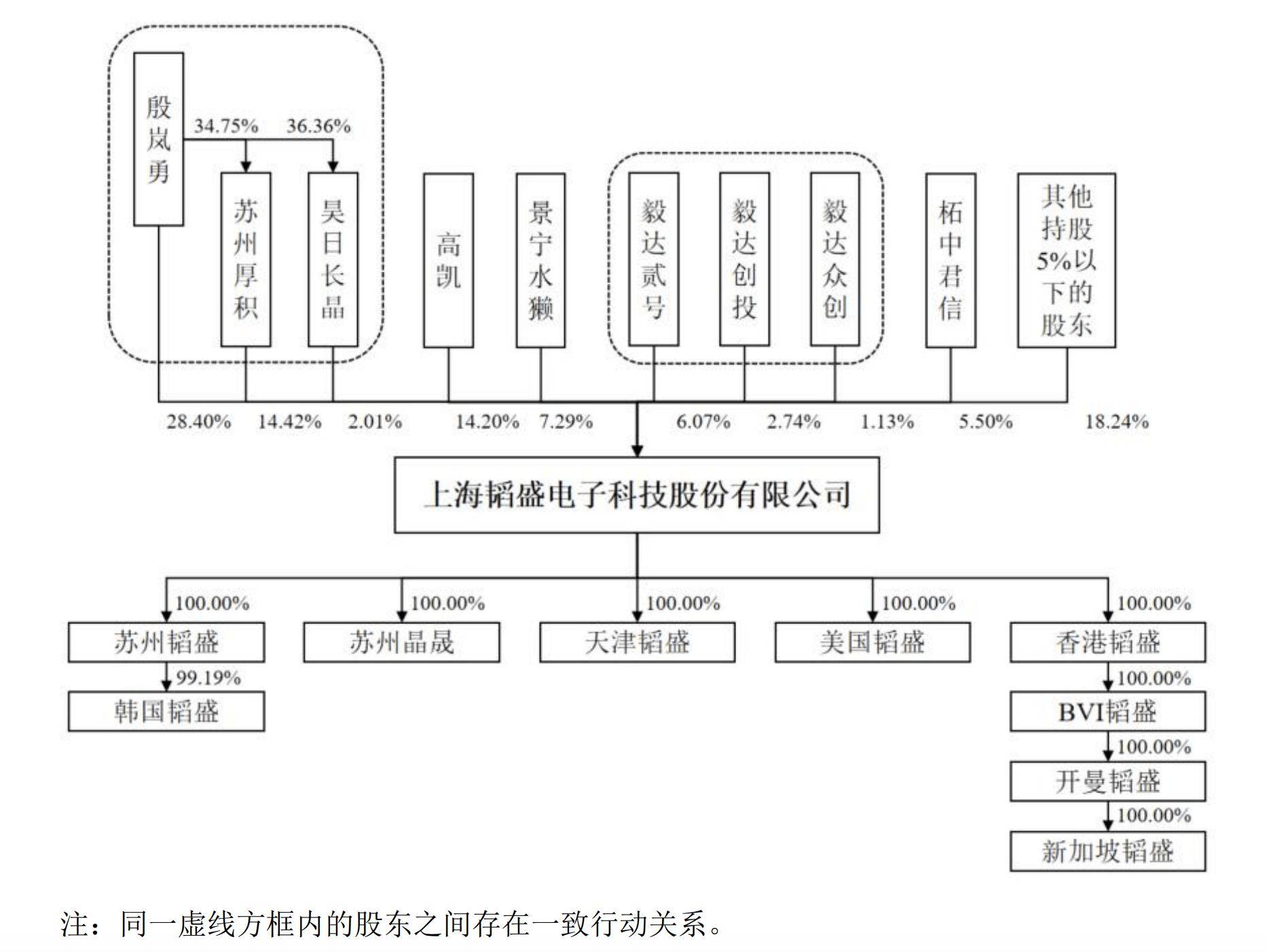 殷岚勇为韬盛科技的控股股东、实际控制人。殷岚勇直接持有韬盛科技28.40%的股份,并通过苏州厚积控制韬盛科技14.42%的股份、通过昊日长晶控制韬盛科技2.01%的股份。殷岚勇通过直接和间接方式合计控制韬盛科技44.83%的股份。