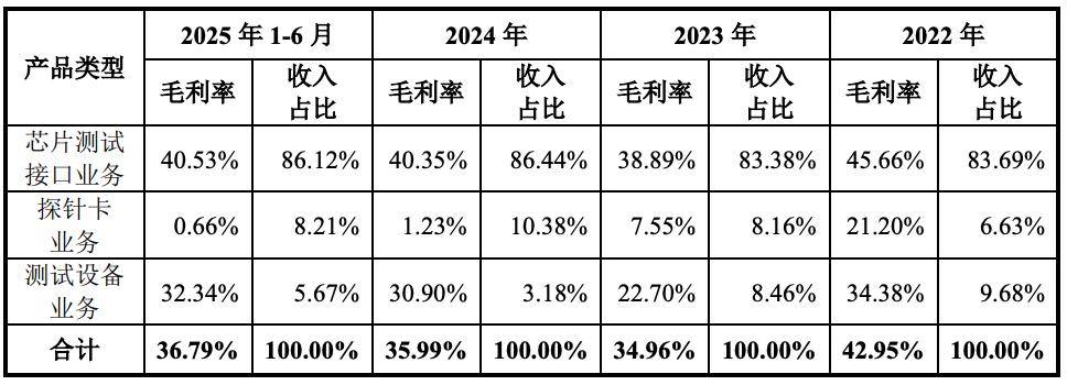 从主营业务的收入来看,目前其主要业务均来自芯片测试接口业务,探针卡业务、测试设备业务销售收入占比逐年上涨。