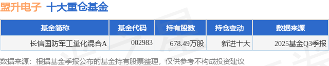 重仓盟升电子的公募基金请见下表: