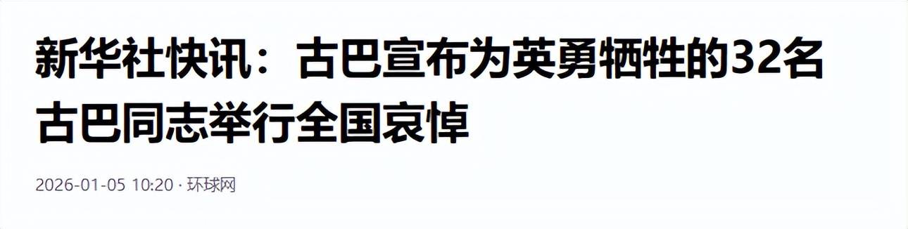“委内瑞拉总统马杜罗的古巴雇佣兵卫队全灭了!”当地时间2026年1月5日,古巴政府发表声明说,在美国强行控制委内瑞拉总统过程中有32名古巴人死亡。这意味着,在1月3日凌晨,美军特种兵突袭委内瑞拉军事基地,试图抓捕委内瑞拉总统马杜罗的过程中,遭到了古巴雇佣兵卫队强烈抵抗,至少32名古巴雇佣兵战士阵亡。据称,古巴雇佣兵卫队被全没了,被美军阿帕奇武装直升机扫射,最终导致全灭了。古巴雇佣兵总统卫队损失如此之大,还不知道瓦格纳雇佣兵保镖伤亡情况。估计可能跑路了,然后根据委内瑞拉军事基地堆出来的尸体,这次委内瑞拉军队,古巴雇佣兵卫队死亡人数,起码超50人了。从保卫马杜罗的这一次战斗来看,委内瑞拉军队一共死了40个人,还有32名古巴雇佣兵。