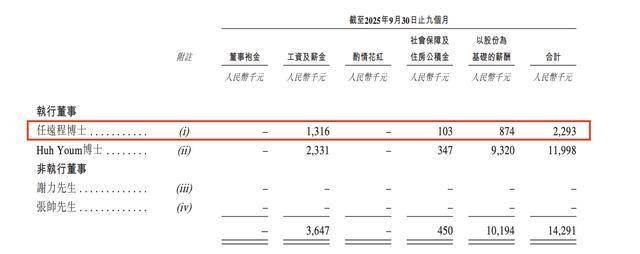 2025年前9月,任远程薪酬(剔除以股份为基础的薪酬)为141.9万元。