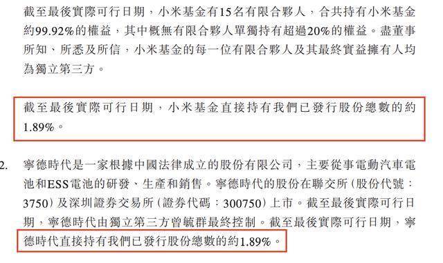 另外,Chen Wei持股为11.08%,小米基金、宁德时代分别持股为1.89%