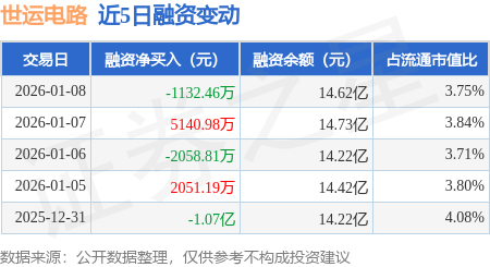 证券之星消息,1月8日,世运电路(603920)融资买入3.51亿元,融资偿还3.62亿元,融资净卖出1132.46万元,融资余额14.62亿元。