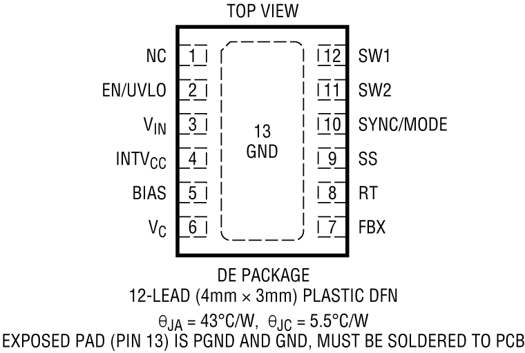 The LT8334 is available in a thermally enhanced 12-lead 4mm × 3mm DFN package.