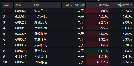 【科创芯片50ETF(588750)标的指数前十大成分股】