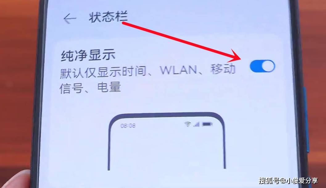 我们点一下这个开关,把它打开就可以了,大家看到没有,现在通知状态栏就干净舒服多了。
