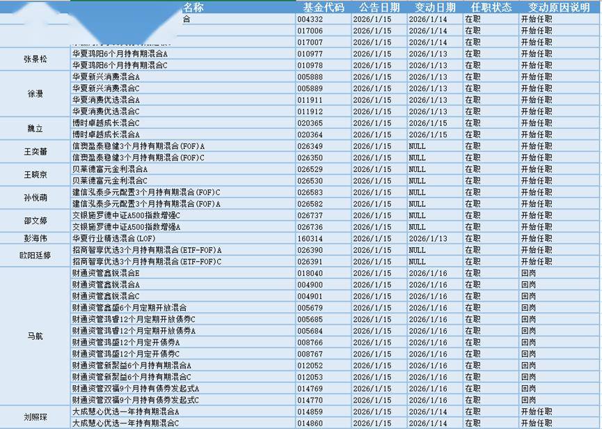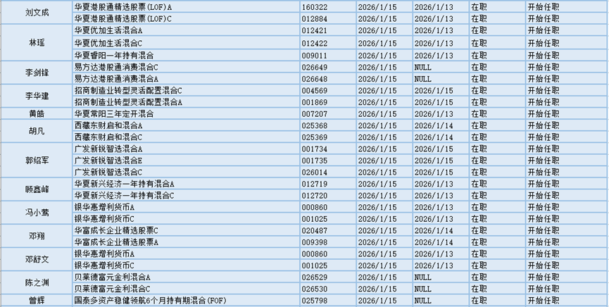 新基金经理上任方面,其中今天(1.15)日有62只基金产品发布基金经理任职公告,涉及26名基金经理。华夏基金顾鑫峰现任基金资产总规模为46.13亿元,管理过的基金都为混合型基金,任职期间回报最高的产品是华夏北交所精选两年定开混合发起式(014283),为混合型基金,在任职的4年又54天时间内获得157.20%的回报,至今仍在管理该基金。顾鑫峰新任华夏新兴经济一年持有混合A、华夏新兴经济一年持有混合C这两只基金产品的基金经理。