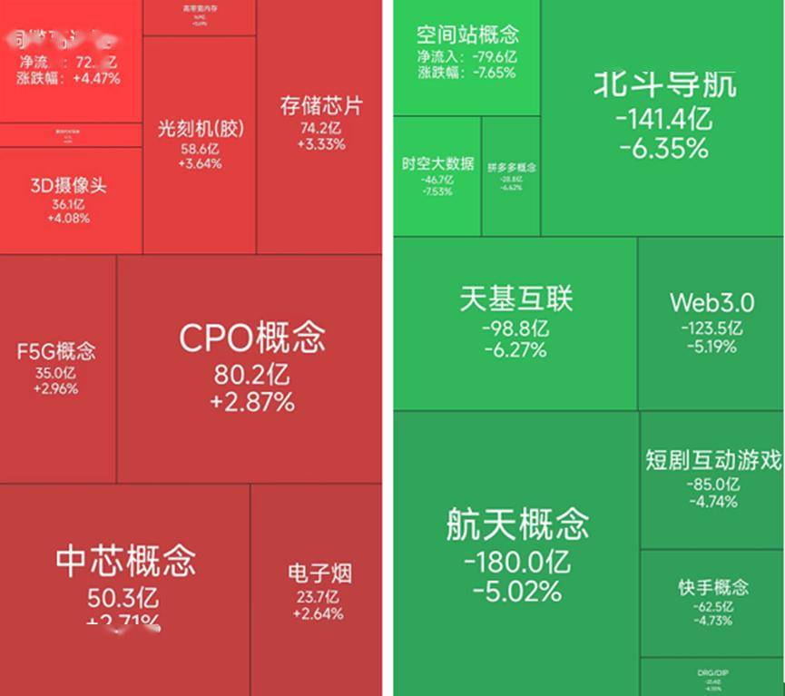 1月15日,A股三大指涨跌不一。截至收盘,沪指跌0.33%报4112.6点,深成指涨0.41%报14306.73点,创业板指涨0.56%报3367.92点。从板块行情上来看,今日表现较好的是铜缆高速连接、存储芯片和CPO概念,而空间站概念、北斗导航和航天概念等板块下跌
