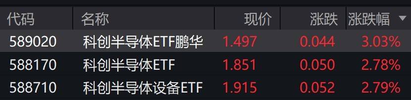 受盘面影响,科创半导体相关ETF涨约3%。
