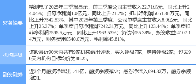 2025年10月29日,国金证券研究员樊志远,周焕博发布了对精测电子的研报《收入利润双增,看好半导体业务成长性》,该研报对精测电子给出“买入”评级。研报中预计公司2025-27年营收32.82/40.11/49.98亿元,同比增长27.94%/22.21%/24.62%;归母净利润2.32/3.32/5.33亿元,同比增长NA/43.29%/60.57%,对应EPS为0.8/1.2/1.9元,对应P/E为82/57/36倍,维持“买入”评级。证券之星数据中心根据近三年发布的研报数据计算,该研报作者对此股的盈利预测准确度为9.88%。