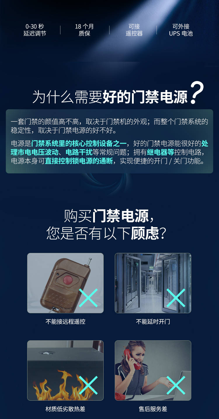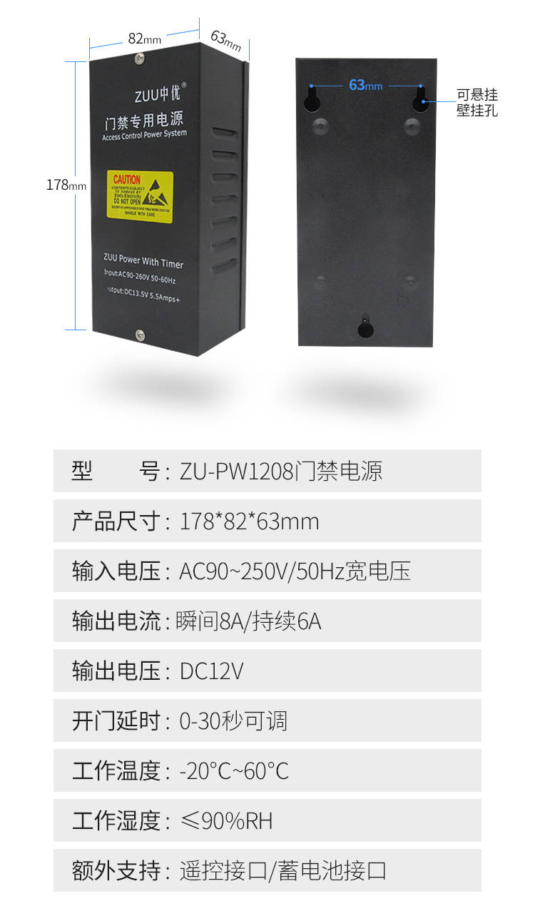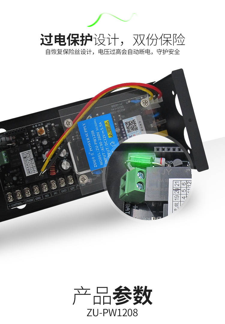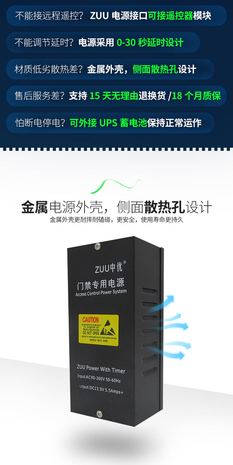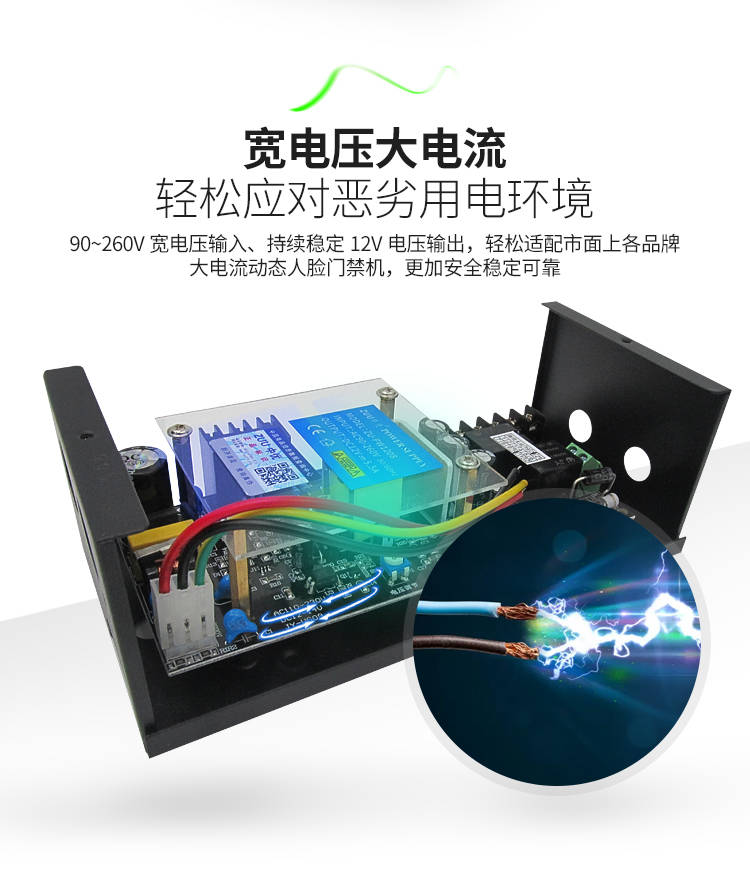 低功耗节能,长期使用更省钱优化电路设计,工作时功耗低,24 小时不间断运行也不费电,对比普通门禁电源,长期使用能节省不少电费,适合商铺、小区等批量安装场景,降低后期使用成本