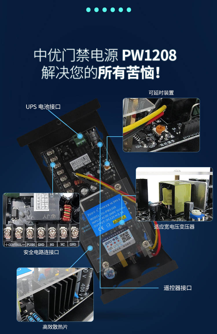兼容多品牌门禁,通用性强不挑门禁主机品牌,适配中优全系门禁产品,同时兼容市面主流门禁设备,不管是新装门禁系统,还是旧电源替换,都能直接适配,不用额外更换其他配件,性价比拉满。