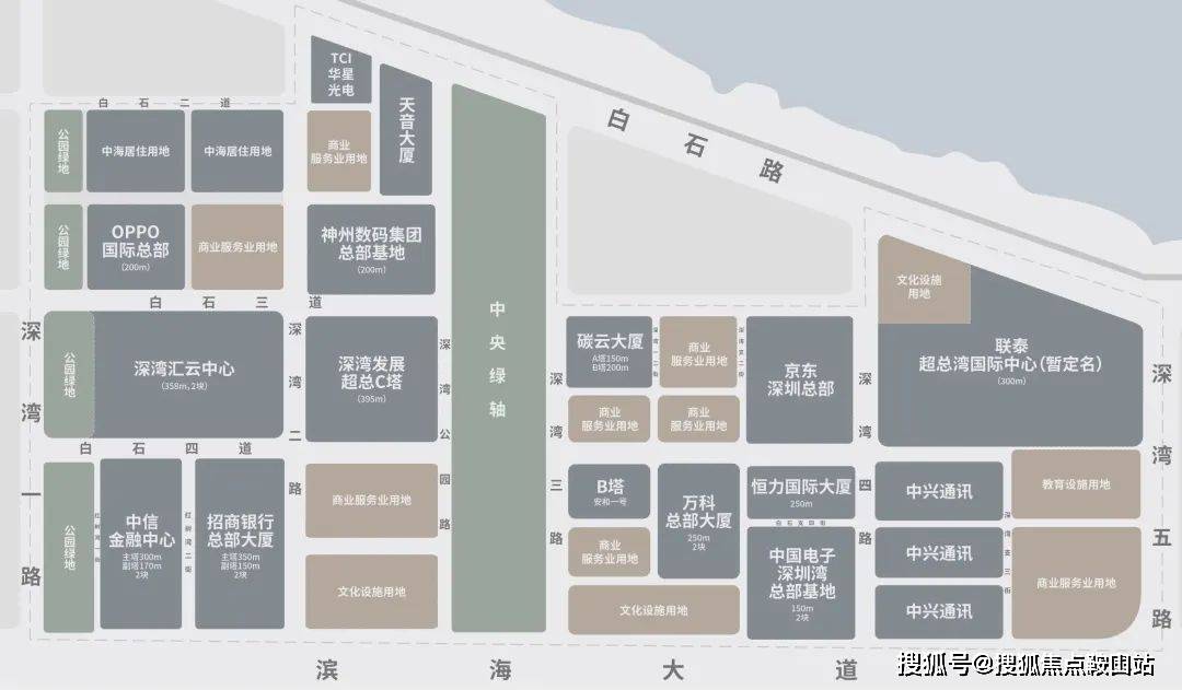 约1.17平方公里深圳湾超级总部基地,规划投资3000亿元,每平米投资密度约为25.6万,单位面积投资密度约10倍于前海核心区(15万平方公里,规划投资3898亿)。