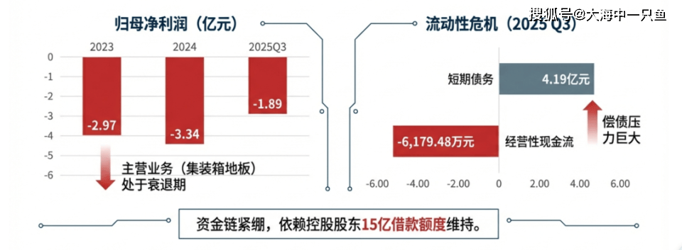 在剖析本次交易的背景时,必须首先审视上市公司自身的财务健康状况,这是理解本次高溢价跨界并购动机的基石。根据公司披露的定期报告,康欣新材的主营业务集装箱地板及木质复合材料正处于行业的衰退期。2023年至2025年三季度,公司归母净利润分别为-2.97亿元、-3.34亿元和-1.89亿元,呈现出不可逆转的亏损扩大趋势。更为严峻的是,截至2025年9月30日,公司有息负债总额已攀升至15.98亿元,而账面短期借款及一年内到期的非流动负债合计4.19亿元,与同期仅为-6,179.48万元的经营性现金流量净额形成了尖锐的偿债剪刀差。