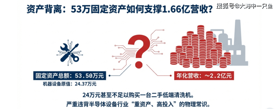 然而,宇邦半导体的财务数据却呈现出一种违背物理常识的“轻资产”特征。根据问询函回复及审计报告数据,截至2025年9月30日,标的公司固定资产账面价值仅为53.50万元,其中机器设备更是低至24.37万元。与之形成鲜明对比的是,标的公司2025年1-9月实现的营业收入高达1.66亿元,年化营收约为2.2亿元。