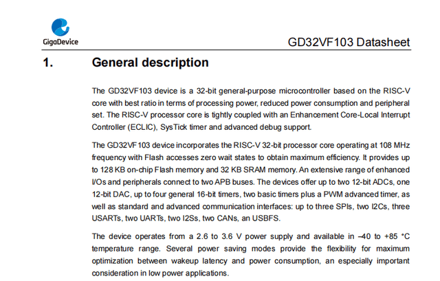 图/GD32VF103 MCU技术手册截图