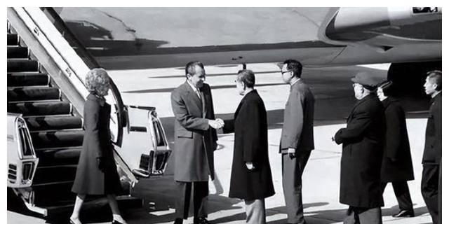 尼克松走下舷梯,首先与周恩来总理握手,两人微笑着互相问候。记者们纷纷按下快门,记录下这一历史性时刻。