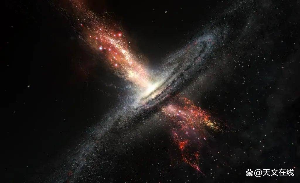 艺术家对一个星系的印象图,该星系在其核心超大质量黑洞喷出的强大物质外流中形成恒星。图片来源:欧洲南方天文台M科恩梅瑟