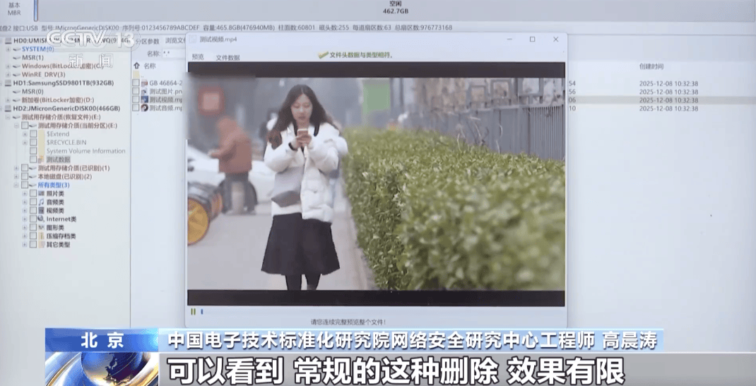 技术人员介绍,消费者在处置旧电子产品时,往往仅采用“删除文件”“恢复出厂设置”等常规操作。实际上,依靠一些技术手段就能恢复被删除的数据。