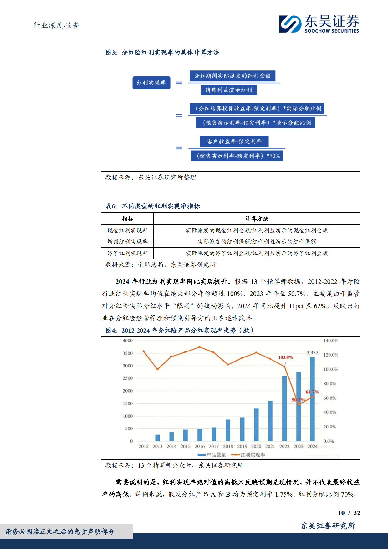 分红险是兼具保障与投资属性的浮动收益型产品,其红利源于利差、死差、费差产生的正向盈余,按不低于 70% 比例分配给保单持有人,设有分红特别储备平滑收益,分红方式分为现金红利和增额红利两类。收益水平可通过预定利率(当前 1.75%)、演示利率(主流 3.5%-4.0%)、实际收益率(行业上限 3.2%)及红利实现率(2024 年达 62%)四项指标衡量,资产配置上权益类占比高于传统险,新会计准则下倾向以 FVTPL 方式持有权益资产。