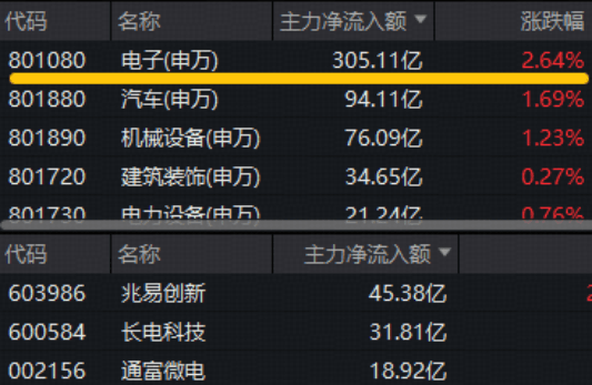 资金面上,电子板块获主力资金净流入305.11亿元,板块吸金额高居31个申万一级行业首位!电子ETF成份股兆易创新、长电科技分别吸金45.38亿元、31.81亿元,包揽A股吸金榜第一、第二位,通富微电吸金18.92亿元,跻身A股吸金榜TOP5。