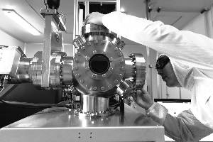 1月21日,在中国科学院物理研究所实验室,钟海博士后在做铁电薄膜沉积实验。