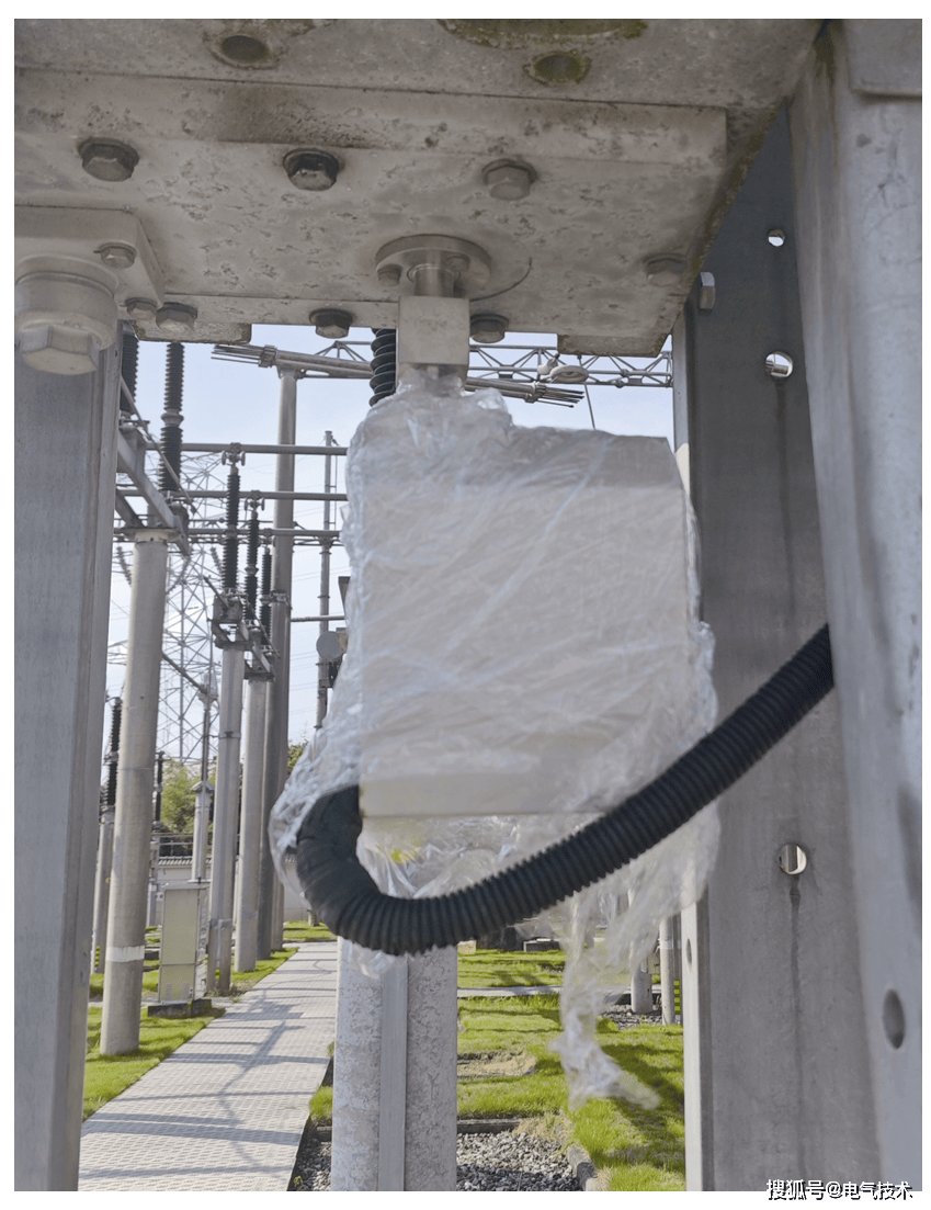 由于带电更换SF6表计风险较大,使用热吹风机烘干4号主变220 kV断路器A相SF6表计接线盒,并使用绝缘胶布进行包扎,外部防雨罩使用保鲜膜材料进行临时防雨密封,如图4所示。2024年12月停电期间,更换4号主变三相220 kV断路器SF6表计及外引线缆。