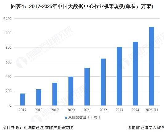 数据通信市场是目前光模块最大也是发展最快的市场。数通市场的快速发展主要得益于数据中心流量的大幅增加和数据中心网络架构的变化,具体来看,一方面,云计算、大数据、物联网等带来数据中心流量与交汇量的爆发,另一方面,数据中心架构升级,交换机之间连接数增加,两者共同推升光模块的用量。截至2025年上半年,中国在用算力中心机架总规模达1085万标准机架。