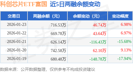 证券之星消息,1月23日,科创芯片ETF富国(588810)融资买入241.7万元,融资偿还194.96万元,融资净买入46.74万元,融资余额716.53万元,近20个交易日中有11个交易日出现融资净买入。