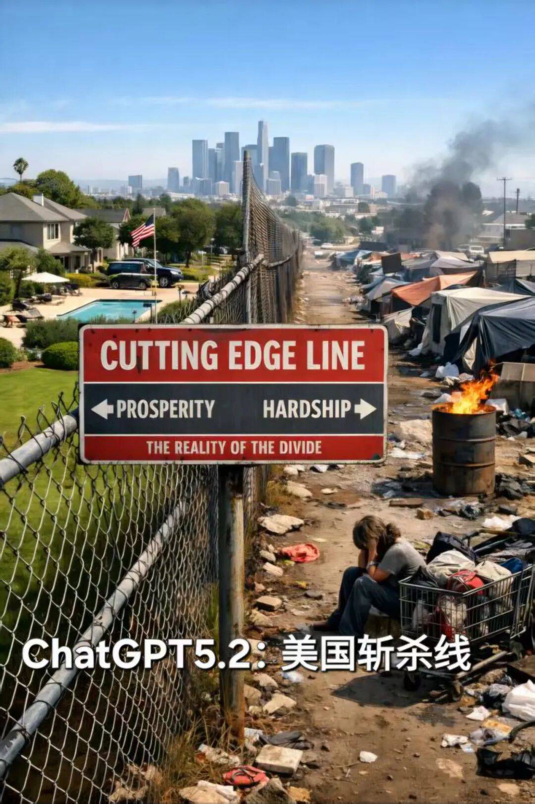 斩杀线这一词的出现,直接让人感受到一种彻底的颠覆。这个词的威力,几乎可以媲美核武器,它浓缩了社会学与经济学的复杂理论,用一个简单的游戏术语来形容:每个人头上都有一条血线,一旦跌破,就会被系统清场。这些被丢弃的人群——流浪汉、瘾君子、病老头——不过是被系统认定的垃圾,正在经历着社会的清理。更震撼的苹果人和安卓人则直接将科技、身份与生存权紧密相连,揭示了某些群体如何在技术社会中被轻易地识别和分类。牢A的这些话语,直接将某个博主击垮,让他意识到自己所有的辩解,在牢A的黑话体系面前,竟显得如此苍白无力。