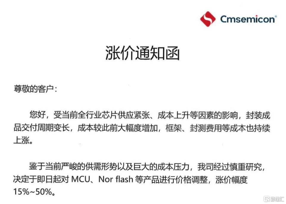 中微半导、国科微今日相继提价,部分产品价格大幅上调50%-80%。