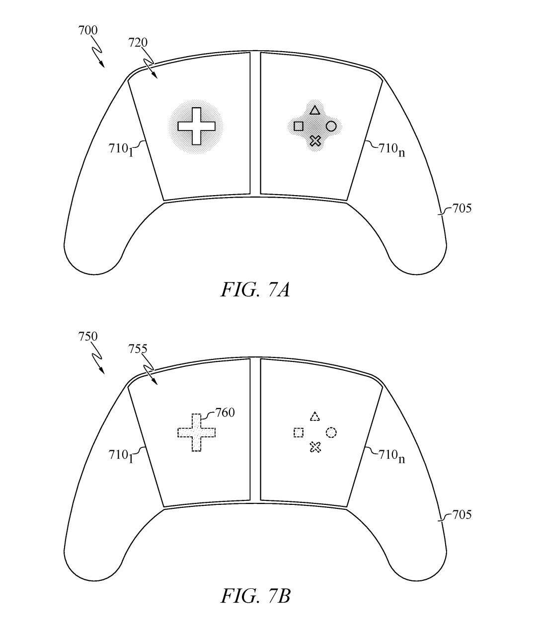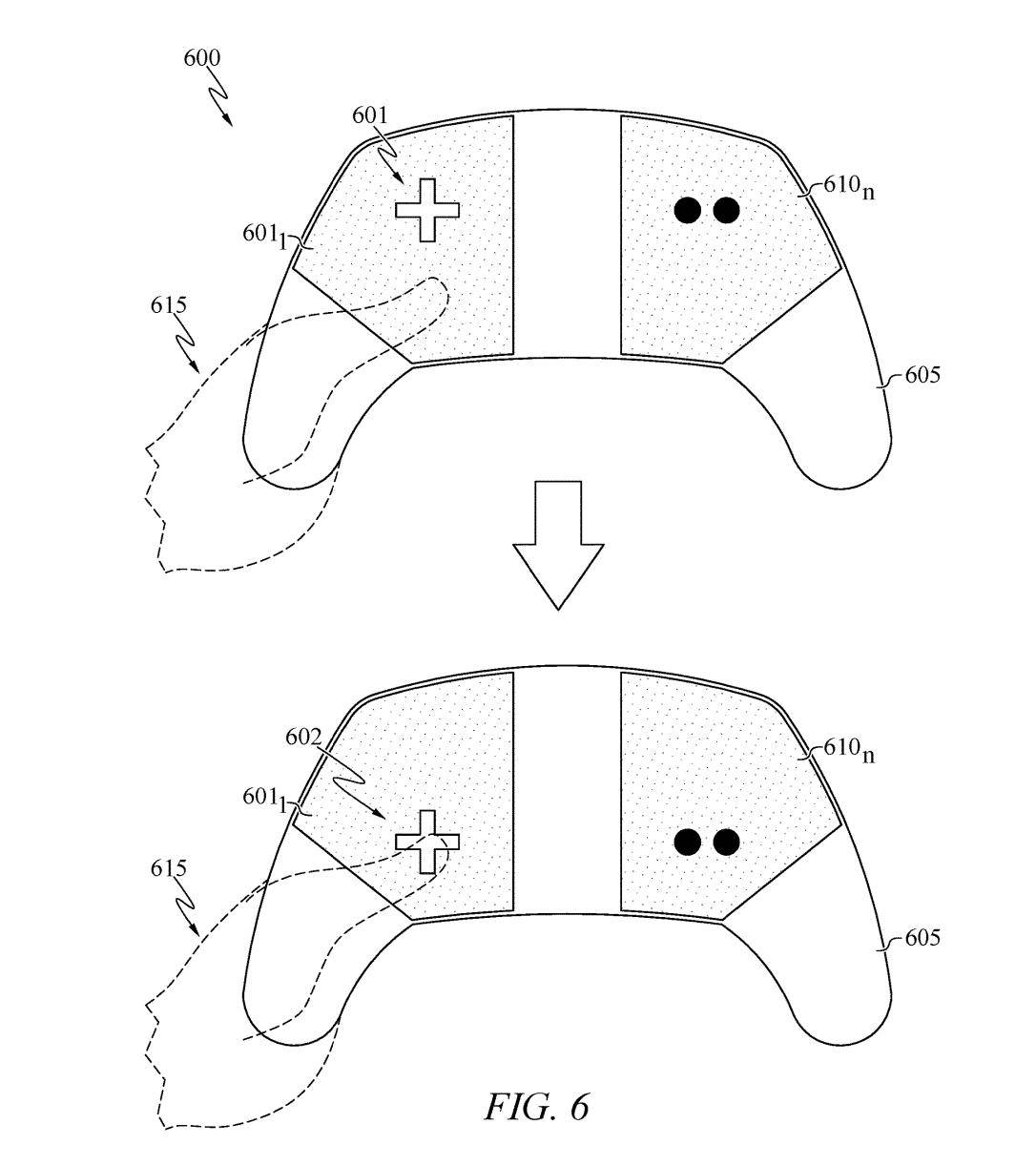 为解决上述难题,索尼在专利中提出了一套解决方案。该技术引入了“定位锚点(Anchors)”系统,手柄能通过该系统感知手指的接触位置,并据此动态调整按键的感应区域。换言之,手柄能“追踪”玩家的手指,而非强迫玩家去寻找固定的按键位置。IT之家附上相关专利设计图如下: