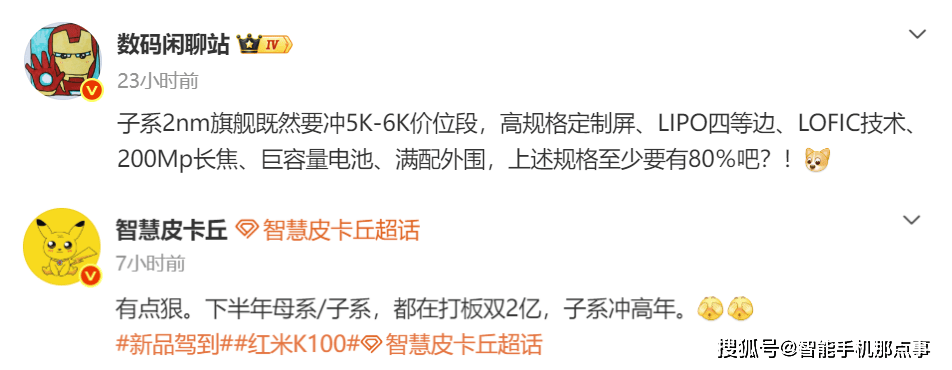 而有了强悍的芯片之后,影像算力也会得到提升,有博主称会打板双2亿镜头像素,这暗示红米K100 Pro Max或Ultra版本可能为主摄和长焦同时配备2亿像素级传感器。