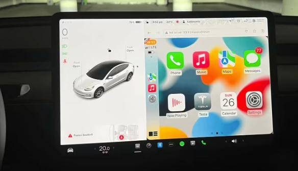 与部分传统车企允许CarPlay完全覆盖车载屏幕的做法不同,特斯拉计划将CarPlay作为“应用窗口”嵌入其现有车载娱乐系统中。